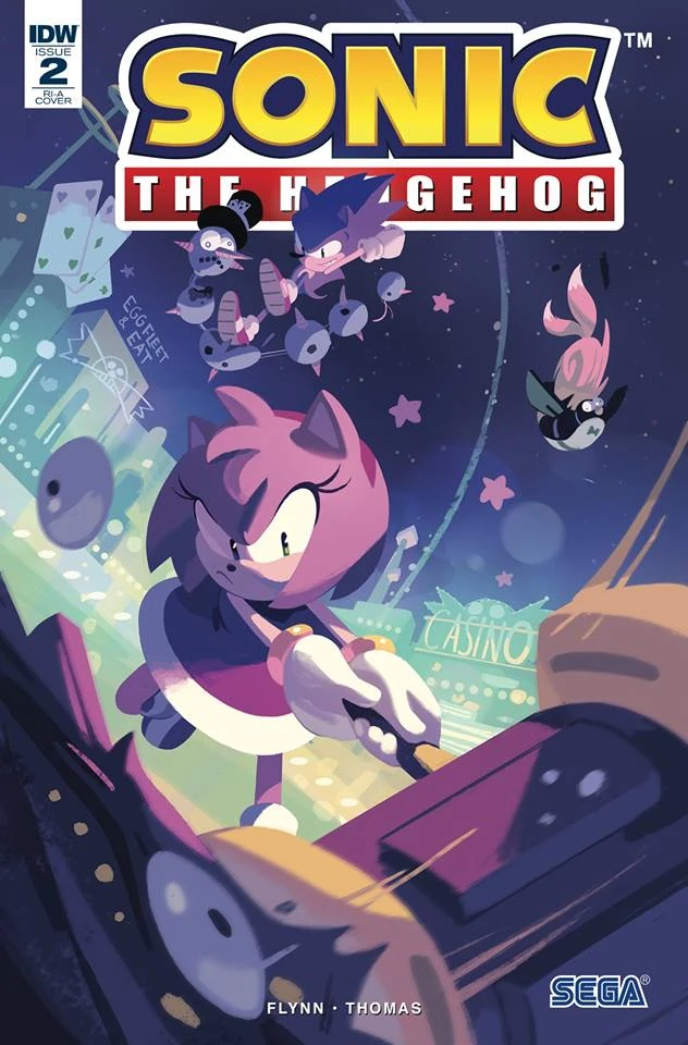 The RI-A cover by Nathalie Fourdraine depicts Sonic, Amy, and Tails in Casino Night Zone from Sonic 2.