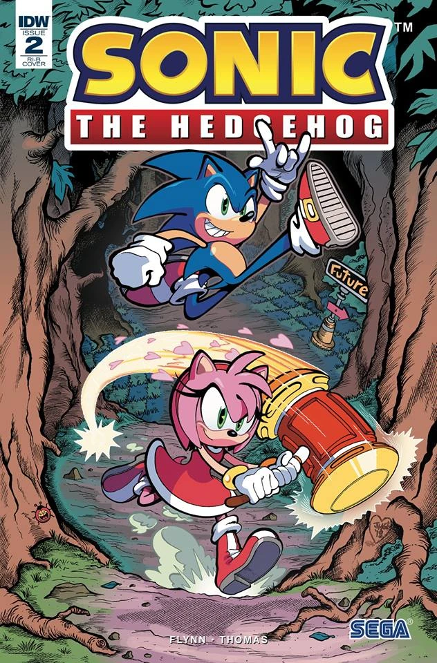 The RI-B cover by Jonathan Gray shows Sonic and Amy running past a "future" sign. This is a reference to Sonic CD which was Amy Rose's first appearance.