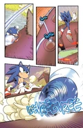 Sonic the Hedgehog arrived on the outskirts of another town just in time to stop the Super Badnik, Death Crab, from leveling it. Though Sonic made quick work of it, the badnik suddenly reactivated before being quickly finished off by Amy Rose and her Piko Hammer. Amy revealed that word had spread of Sonic's team up with Tails in the last town and she figured out just where he would pop up next. Sonic, wary of Amy's crush on him, thanked her for the save before attempting to head out. Amy, however, didn't seek out the blue hero for just personal reasons; she asked Sonic to return to the Resistance.