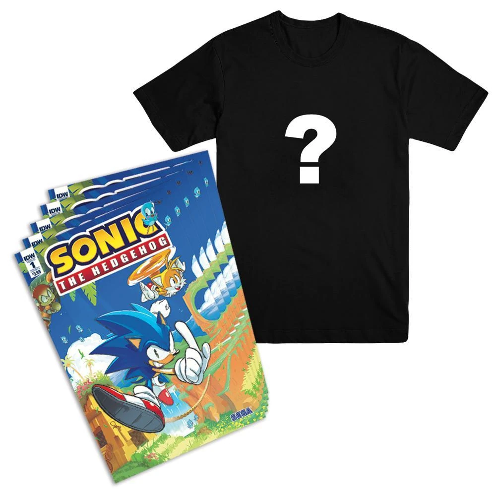 On March 16, 2018, at "Gotta Go Fast: The Official Sonic the Hedgehog Panel", the official Sonic the Hedgehog panel at the SXSW Gaming 2018 convention, Sega announced the "Sonic the Hedgehog IDW Comic Series Exclusive Bundle", which was a limited edition bundle up for pre-order on their online store, SEGA Shop. Included in the bundle were issues #1-4 of IDW's new Sonic the Hedgehog comic book series, an additional exclusive variant cover of issue #4, an exclusive mystery t-shirt (both of which were only available on the SEGA Shop), and digital downloads of Sonic the Hedgehog issues #1-4 as they were released. The bundle was released on May 1, 2018 and costed $40. It was also possible to select a shirt size from the following options: Small, Medium, Large, X-Large, and 2X-Large.