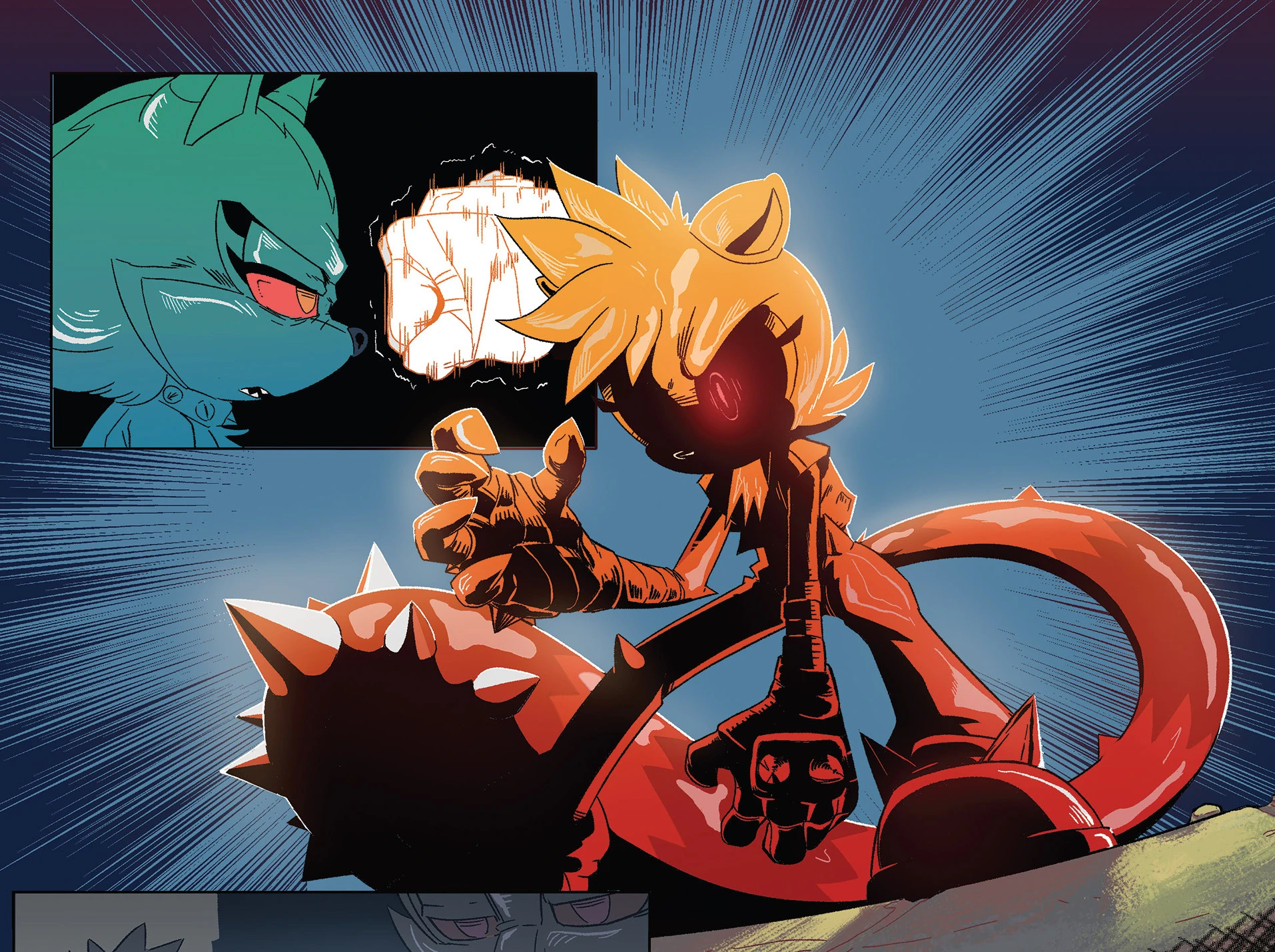 Tangle and Sonic fighting together.